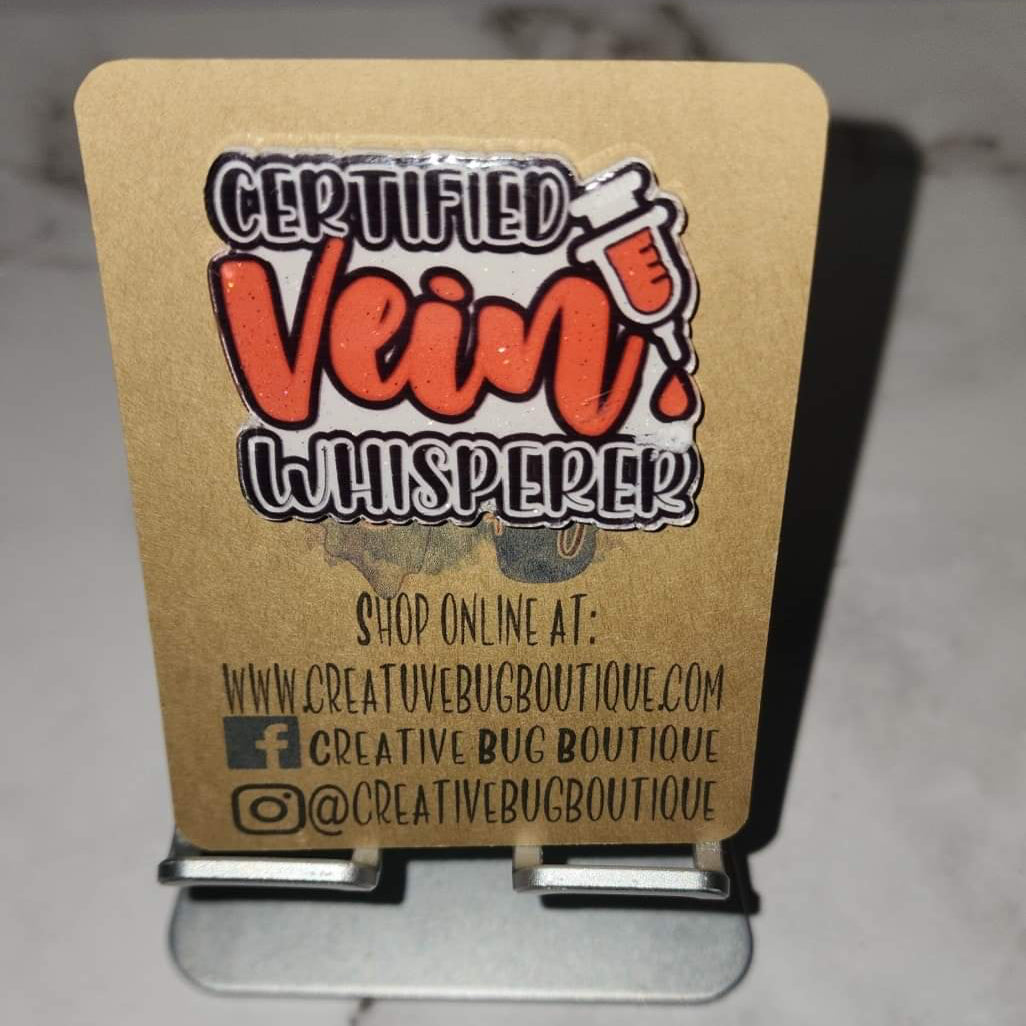 This listing is for one Certified Vein Whisper retractable badge reel approx 2” wide. They are made of acrylic, glitter, uv resin and vinyl. Perfect gift for nurses, doctors, teachers or anyone who wears a ID Badge. Please choose which style clip you would like to fit your style. BLANK ONLY means the acrylic piece will have a piece of the 3M Dual Lock applied but DOES NOT come with a badge reel.**
